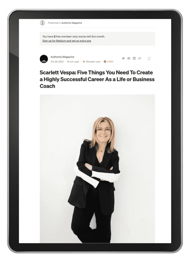 Scarlett Vespa is an Advocate & Accelerator of The Power of Connection, coach, speaker and dedicated to inspiring and empowering individuals to unlock their authentic selves. With a wealth of experience in media, Scarlett has appeared on radio and television, sharing her insights and expertise on purpose, empowerment, and transformation. As a featured talent and ambassador for the Trilogy brand, she has successfully connected with audiences through engaging campaigns that highlight the importance of living a fulfilling life. With her articles published in various magazines, Scarlett is committed to educating both women and men on the power of purpose and the journey towards self-discovery. Her mission is to reach as many people as possible, offering practical tips and heartfelt wisdom to help them navigate their unique paths to empowerment and fulfillment.